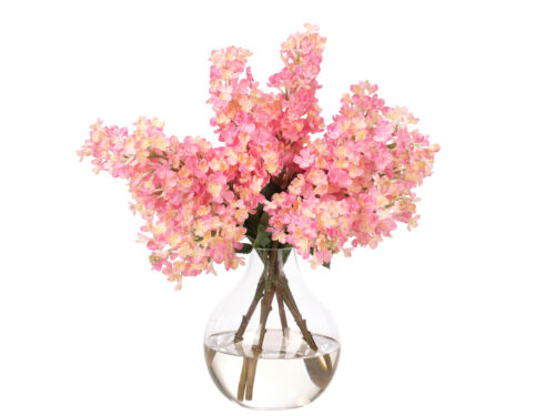 Pink Hydrangea Faux Arrangement in Glass Vase / KF1138