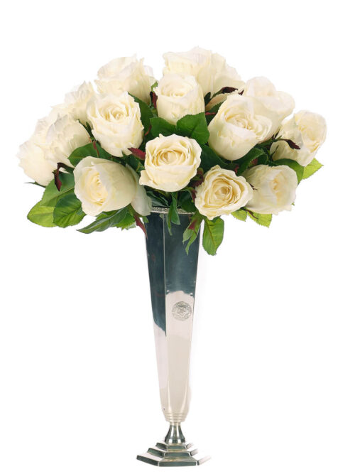 White Rose Silk Arrangement in Silver Vase (FINAL SALE) / WF128