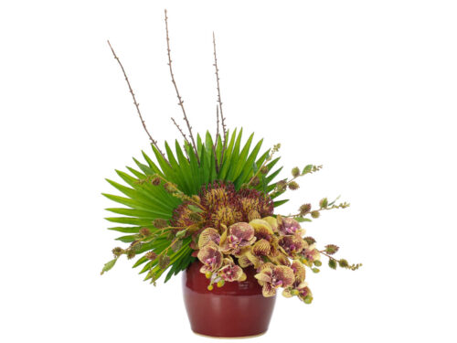 Green Protea Artificial Arrangement in Ceramic, 27″ H / GF671