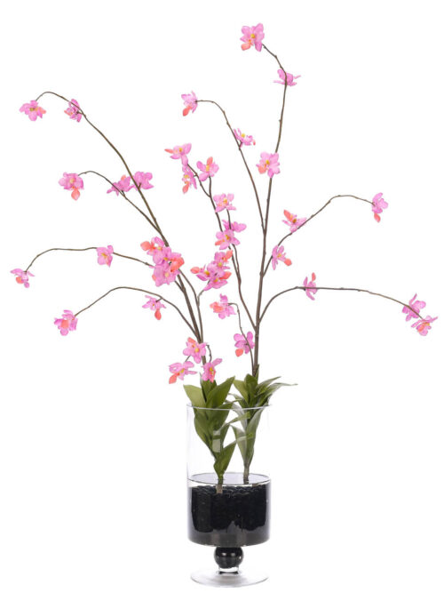 Pink Orchid Silk Arrangement in Glass Vase, 32″ H / KF1241