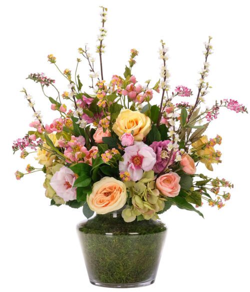Rose, Ranunculus, Faux Moss Garden, 27″ / KF1333MG