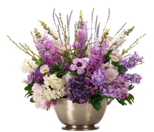 Purple Hydrangeas Faux Arrangement in Glass Bowl / PF595