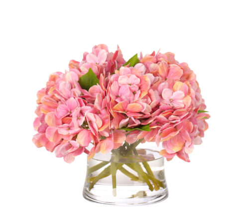 Pink Hydrangea Faux Arrangement in Glass Vase / KF1138