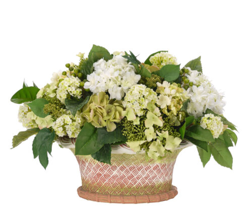 Green Hydrangeas Faux Arrangement in Pottery Square / BF229