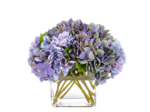 Purple Hydrangea Faux Arrangement in Glass Square / BF001