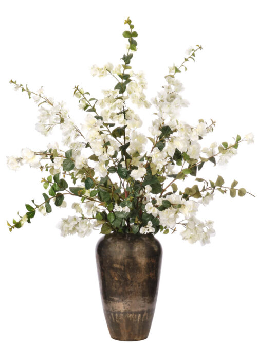 White BougainvilleaArtificial Arrangement in Metal Jar, 43″ H / WF094