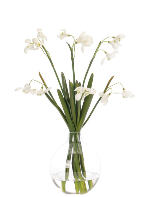 White Snowdrop Artificial Arrangement in Glass Bubble / WF1902