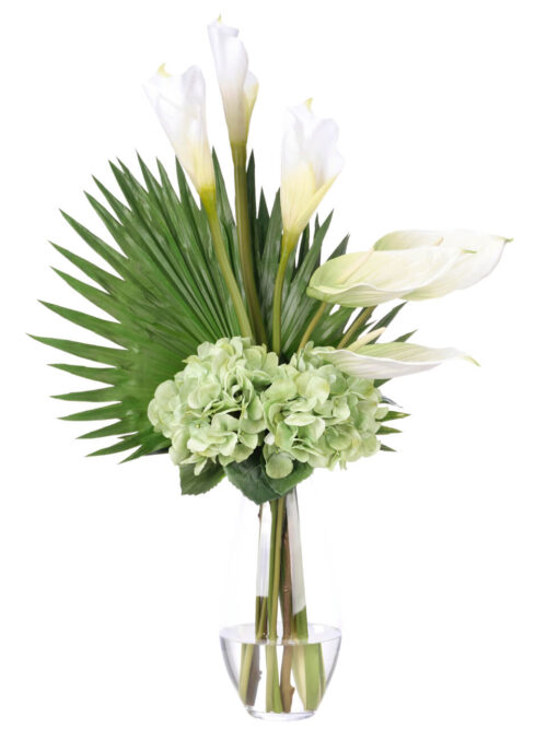 White Calla Lily Artificial Drop In Bouquet in Crystal Vase, 26″ H / WF2013/3CD