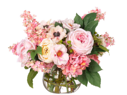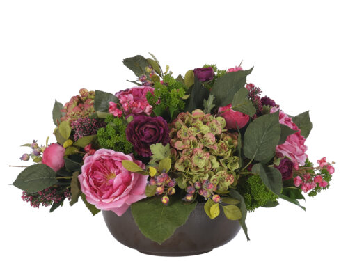 Rose, Hydrangea, Faux Watergarden, 14″ / KF1278