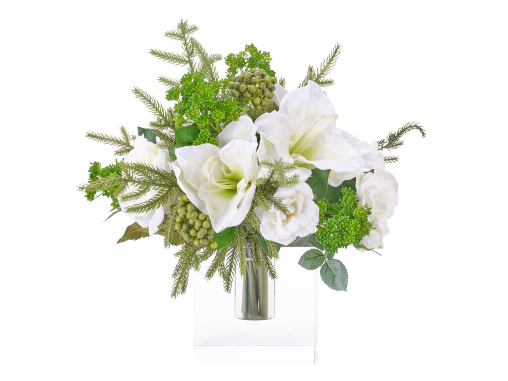 Amaryllis Rose, Holiday Drop In, Faux Arrangement, 15″