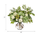Inspired by nature, this white hydrangeas lifelike bouquet, styled in a glass vase. Watergarden designs display lifelike stems in crystal-clear, realistic "water" for a just-cut look that lasts. Hand-arranged in glass and ready to display, it stays flawless season after season. An everlasting design with beauty that never fades. The lush, voluminous blooms highlight full-bodied petals with rich color variation. Measuring 26" W x 18" D x 23" H, it makes a perfect focal point for entryways, sideboards, or living rooms. Perfect for creating a welcoming atmosphere with zero upkeep.
