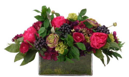 Pink Hydrangea Faux Arrangement in Glass Rectangle, 11″ H / GF600MG