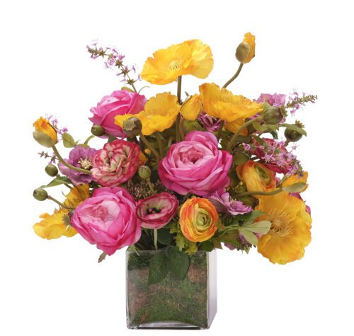 Ranunculus, Peony, Faux Moss Garden, 15″ / PF637MG