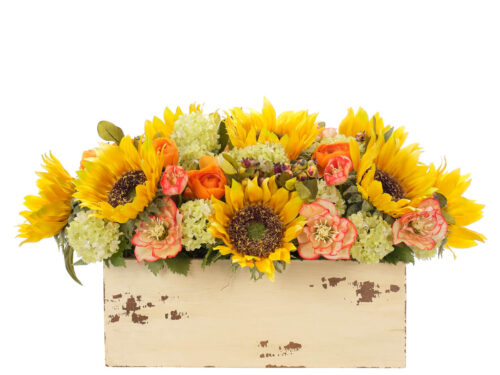 Yellow Sunflower Artificial Arrangement in Wood Box (FINAL SALE) / YF428