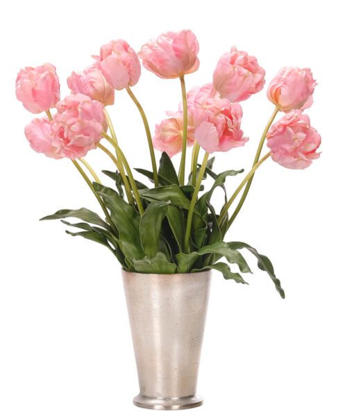 Pink Tulip Faux Arrangement in Glass Vase, 28″ H / KF1207