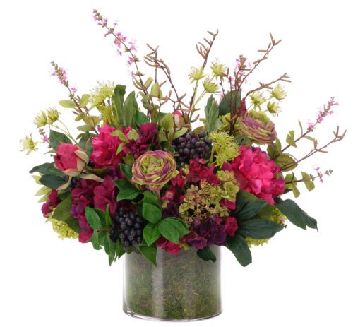 Hydrangea, Peony, Faux Moss Garden, 24″ / PF635MG