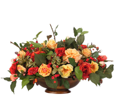 Pine Branch Red Rose, Holiday Faux Arrangement, 15″ / RF368