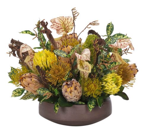 Pink Rose Protea Mix Silk Arrangement in Glass Bubble, 24″ H / KF1162